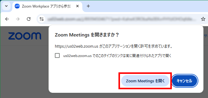 「Zoom Meetings を開きますか?」のダイアログが表示されたら