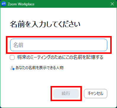 「名前を入力してください」というダイアログが表示されますので、お名前を入力して