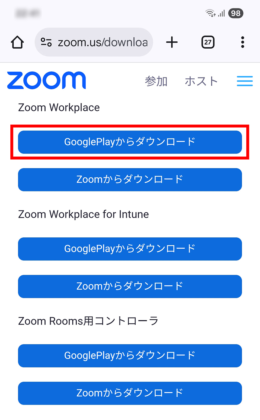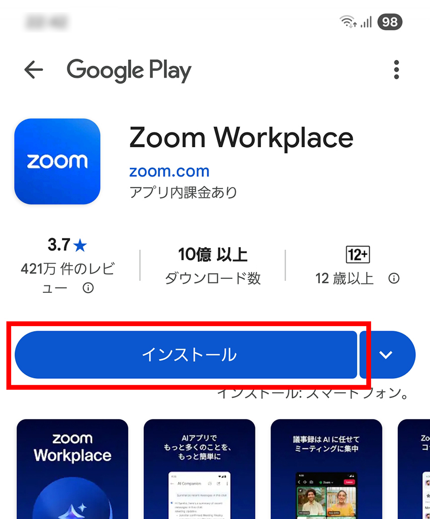 「Zoom Workplace」をダウンロード&実行して、アプリをインストールします。
